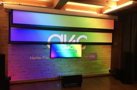 トップフロント・トップリアには、天井に設置をしてもストレスがない「CLASSIK UNIK」を設置。薄型金具を使用して可能な限り天井に近づけて設置いたしました。基本の7.1chを床置きにし、トップスピーカーを4本設けた事により映画館さながらのサラウンド感を楽しむ事ができる最高のホームシアターが出来上がりました。