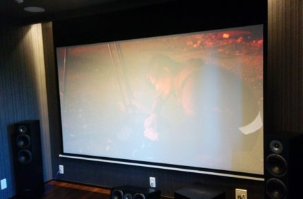 今回は造作ラックでのホームシアターでしたので、スクリーンは造作ラックに取付されています。その為、天井に穴などを空けることなくスマートに設置が出来ています。