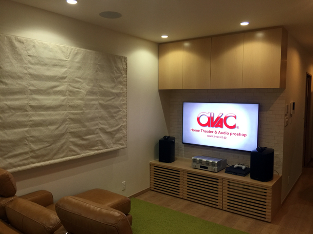 リビングの一角を有効に利用した理想のリビングシアターとなっております。