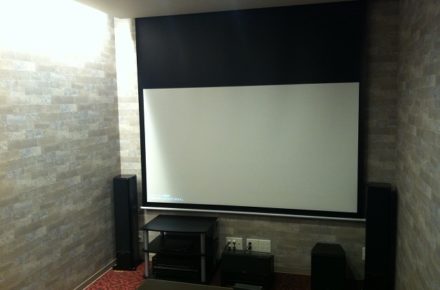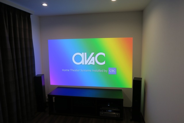 映像はフルHDを高画質で楽しめる”SONY VPL-HW60”と、キクチ科学製 電動120インチと組み合わせました。