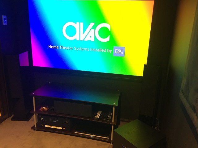 限られた空間ではございましたが、インストーラーの山本氏にインストールを依頼して簡易防音を施し、さらに導入できる最大サイズの74インチの電動スクリーンを設置いたしました。