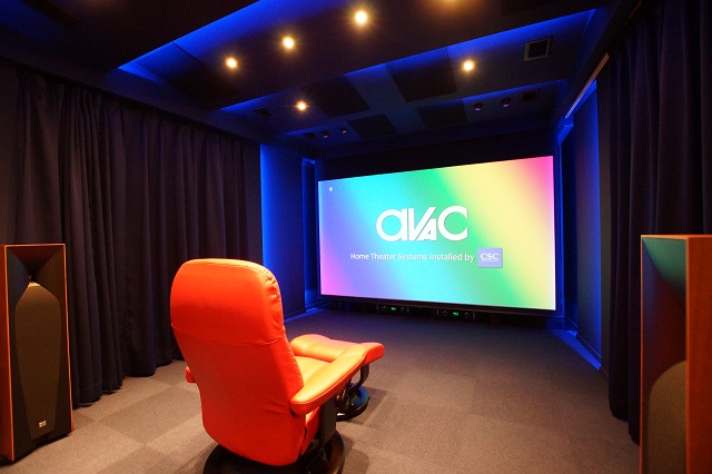 コンサルのトマトという赤色の受注生産色ですが、モノトーンなシアタールームに映えるとても良いカラーです。