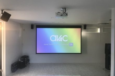 今回の施工例は、リビングにできるだけ大きいスクリーンを設置したいという相談から、スピーカーを壁面&天井に設置したシアタールームのご紹介になります。