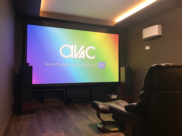 スクリーンは、フロントスピーカーの「B&W 700シリーズ」が入るギリギリの120インチを導入。