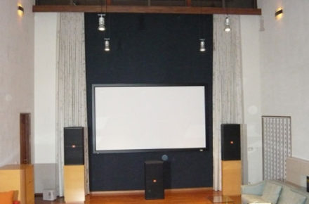 スクリーンサイズは施主様たってのご希望で110インチを導入。ハウスメーカーの設計の方と念入りな打ち合わせを重ね、お部屋後方の見せ柱を移動することで投射距離を確保し、無事設置することができました。