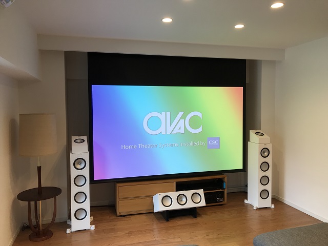 スクリーンサイズを優先とした為、センターレス構成ではございますが十分なイマーシブサウンドを実現。お施主様に大変喜んでいただくことができました。