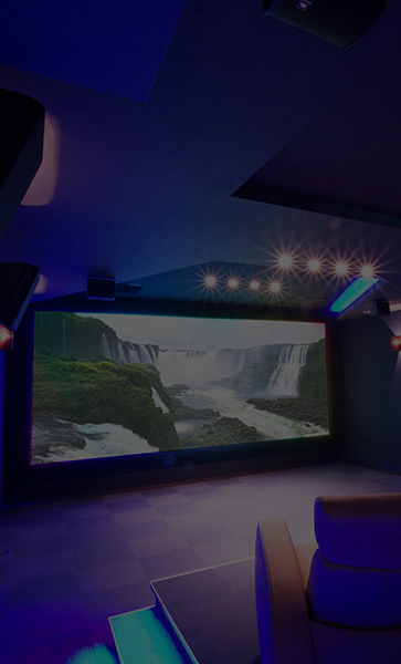 各機器の電源も自動でONになり、お選びになったソースの再生が始まります。まるで映画 館にいるような演出が、お客様のシアターライ フの楽しさを、さらに広げることでしょう。アバッ クでは、実際にこのシステムをご体験いただけ ますよう、各ショールームに導入しております。