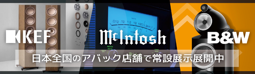 国内で最も人気の高いイギリスのスピーカーブランド「B&W」の展示ラインナップは国内でも有数の規模を誇り、センタースピーカーとサブウーファーを除く全シリーズをご試聴いただけます。また、新品以外に中古品も取り扱っており、タイミングによっては現行モデルと完了モデルを比較試聴といったことも可能です。アンプはMcIntoshを多数展示、価格帯による差や真空管モデルとの比較もご確認頂けます。アバックならではの高額下取り交換にも対応。お手持ちの愛機を高く買い取らせていただきますので、お気軽にお問い合わせくださいませ。